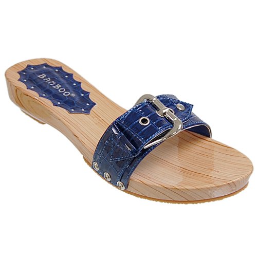 Buy Women's Bamboo by Journee Croc Print Buckled Slide Sandal - Blue 8.5 Now